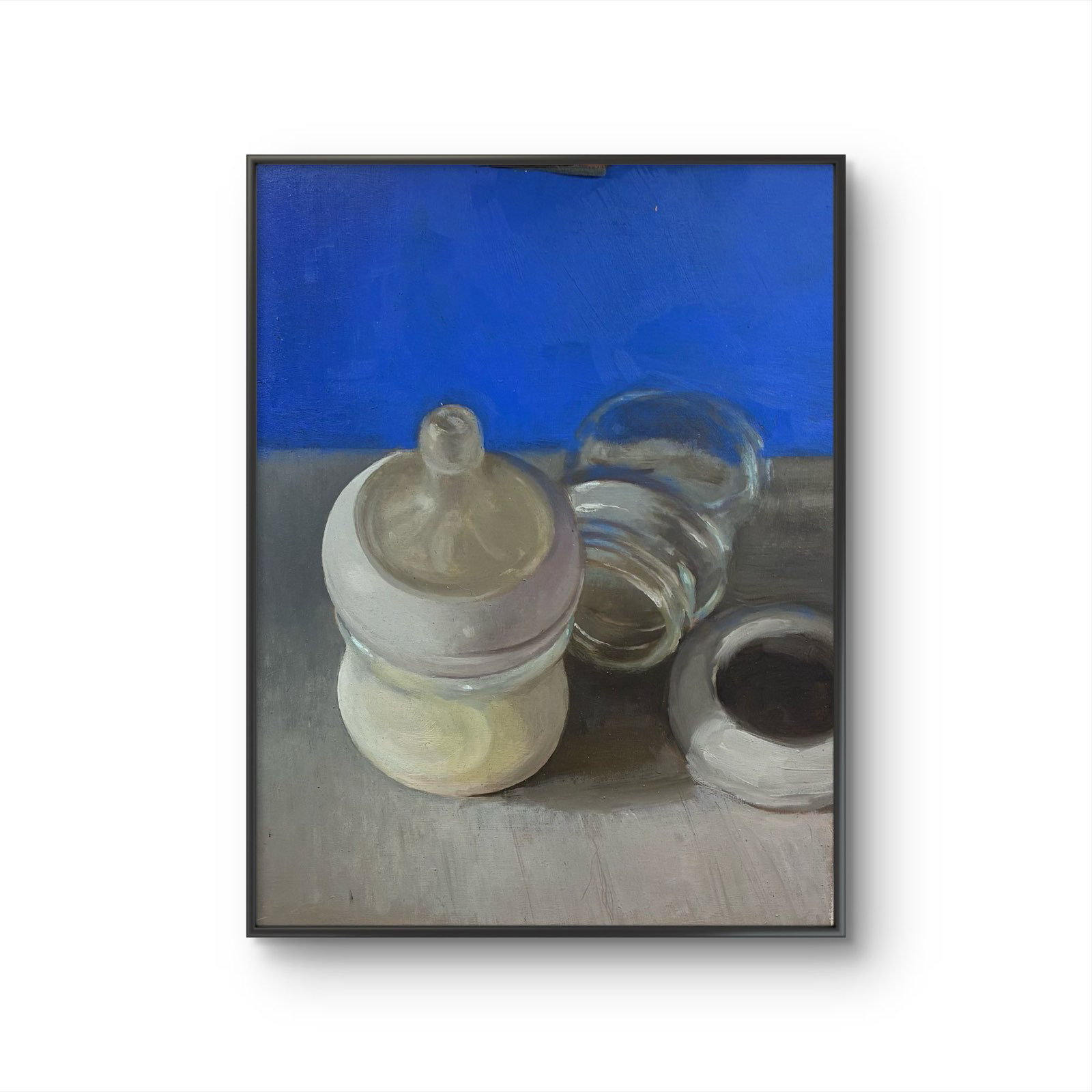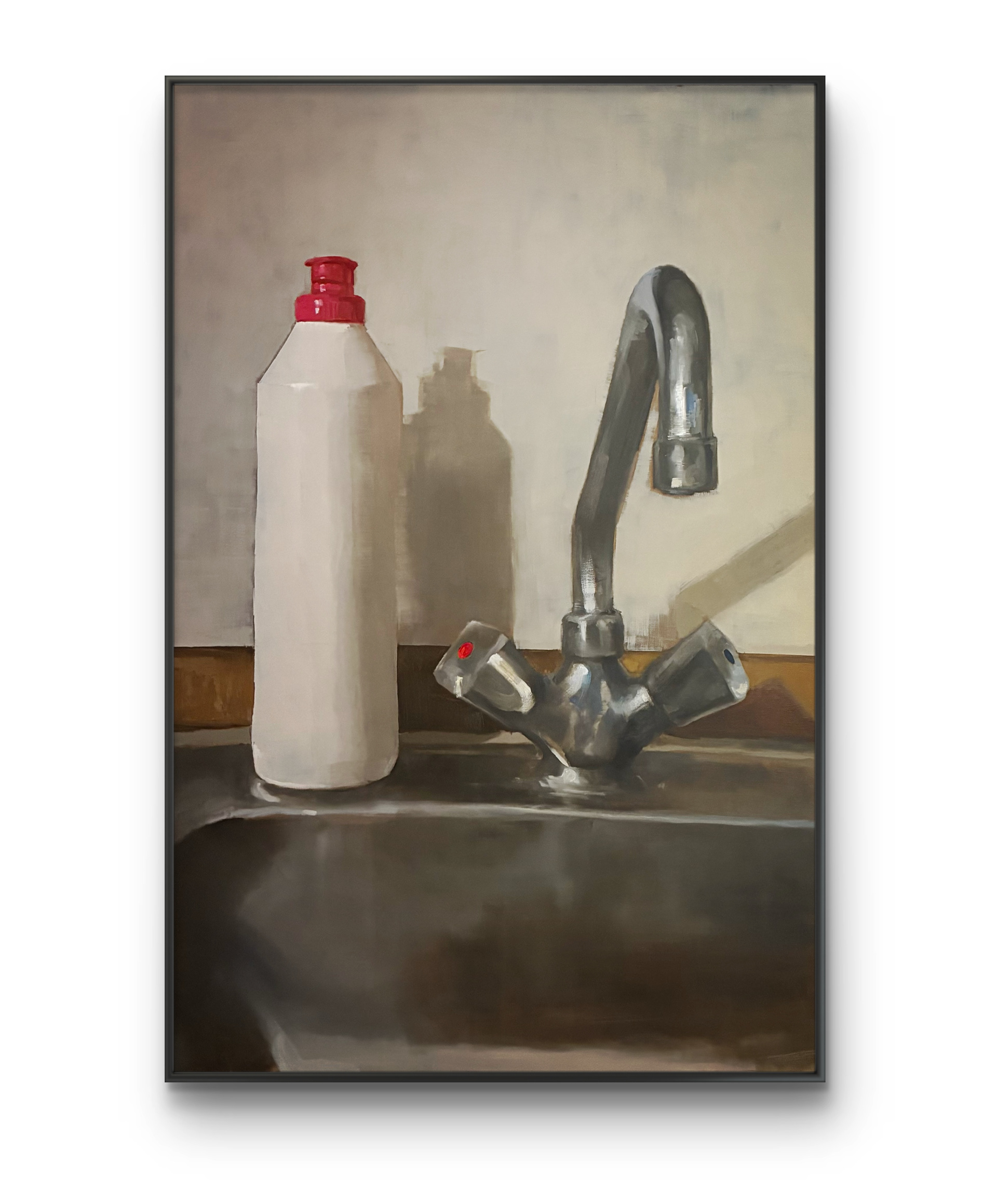 The paintings operate through reduction and precision. Function is slowed, and the habitual flow of daily life is momentarily suspended. In this pause, objects and spaces are freed from use and expectation, allowing form, surface, light, and spatial relationships to come forward. Meaning does not arrive through symbolism or anecdote, but through sustained looking.